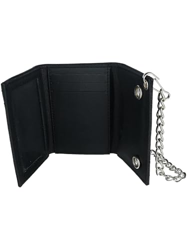 HOT ! CTM Men's Leather Eagle Imprint Trifold Chain Wallet, Black