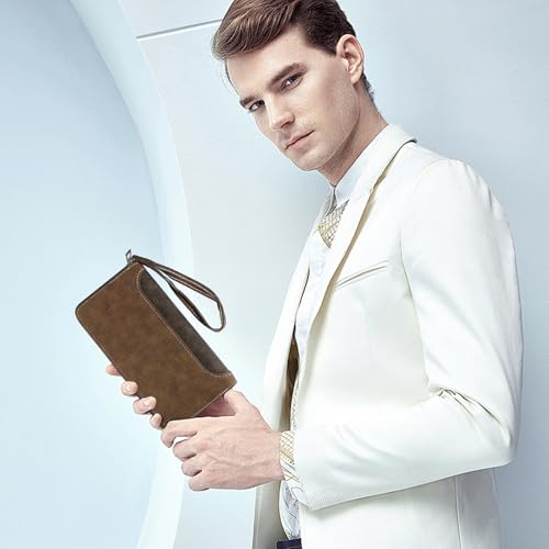 Mens Wallet, PU Leather Large Capacity Long Wallet for Men Card Holder Wallet with Coin Pouch Multi Card Slots (Light Coffee) 6