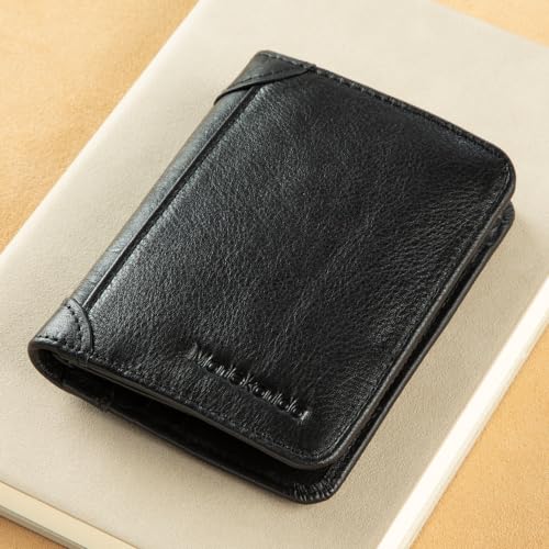 Men's RFID Shielded Three Fold Leather Wallet, 11 Credit Cards with Gift Box (Retro Black) 1