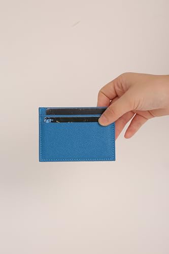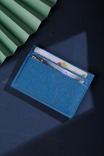 HOT ! Slim Leather Card Holder with Wave Design, RFID Blocking, Blue and White, 2.76" x 3.94