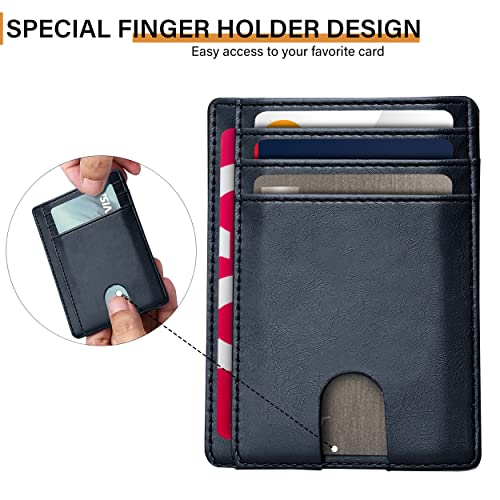 HOT ! Minimalist Slim Wallet for Men, Front Pocket Real Leather Mens Wallets, RFID Blocking Business Credit Card Holder with ID Window (Slim Blue)