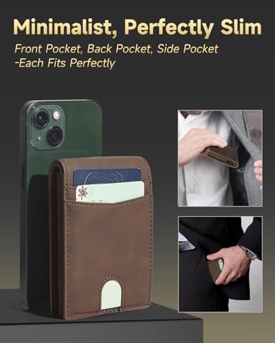 • 【Ultra-Portable and Convenient】 The dedicated ID window enables hassle-free card swiping . The magnetic closure adds an extra layer of security. The slim build slips effortlessly into front pocket, while the separate cash compartment keeps your bills neatly organized.