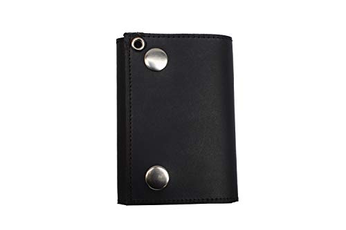 MARSHAL Men's Genuine Leather Black Trifold Wallet with Chain Biker Trucker Motorcycle 7