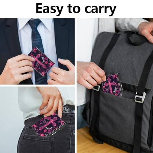 • COMPACT CARD WALLET: Slim, thin, small ID case fit in your front pocket, ideal for travel and everyday use with measurements of 3.74 x 2.56 x 0.5 inches. Business appearance and feeling will help you leave a good first impression on your clients, associates, and entrepreneurs.