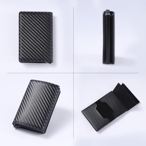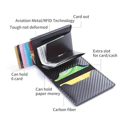 HOT ! Mens Minimalist Wallet - Carbon Fiber Slim Design with Pop-Up Card Access & Cash Slot Black