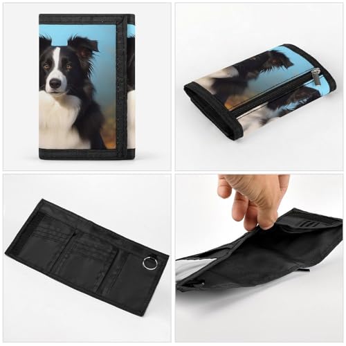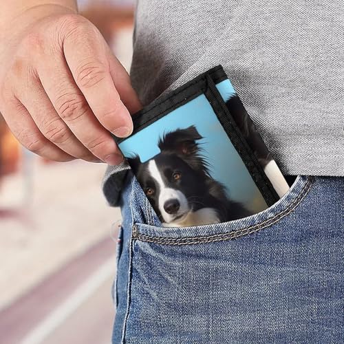 HOT ! Border Collie Trifold Wallet for Men - Slim 8 Card Slots, Zipper Coin Purse Money Clip, Cash Compartment