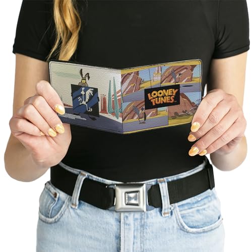 HOT ! Buckle-Down Men's Wallet, Bifold, Looney Tunes Wile E Coyote and Road Runner Scene Blocks, Vegan Leather, 4.0" x 3.5"