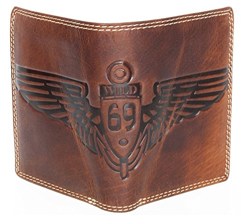 • Men's natural strong glazed genuine leather wallet Pedro with wing
