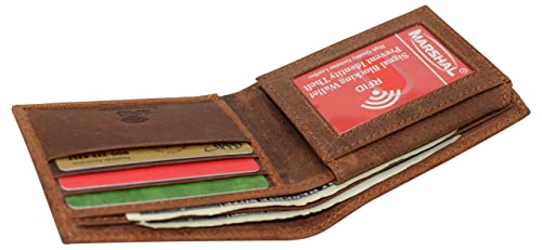 MARSHAL Marijuana Leaf RFID Blocking Real Leather Bifold Classic Wallet for Men 3