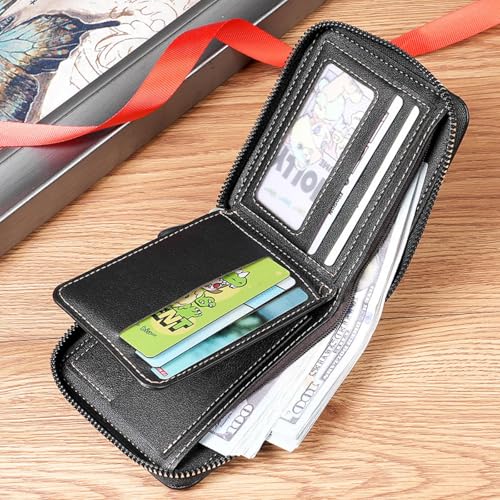 HOT ! Zipper Men's Short Wallet, Large Capacity Coin Bag, Multi-Card Slot, Three-fold Perimeter Bag, Men's Wallet