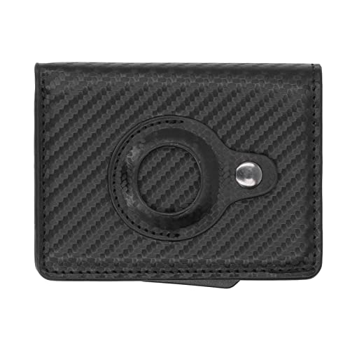 Leather Wallet for Men Women, Wallet Card Bag Aluminum Alloy PU Leather Multifunctional Anti Theft Card Holder for iOS Locator/507 (Color : Carbon Black) 1