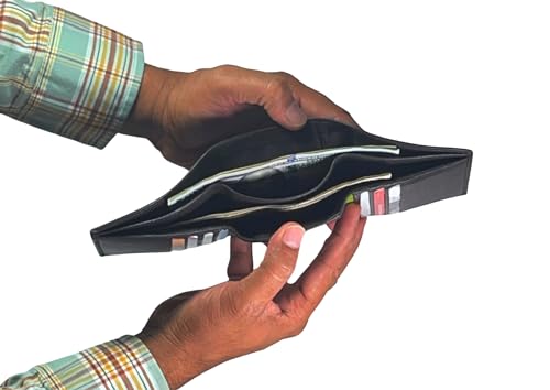 • FEATURES: Hold upto 6+ credit cards and 1 ID Window with double bills compartment to hold lots of extra cash inside and 2 slip pocket to hold extra cards.