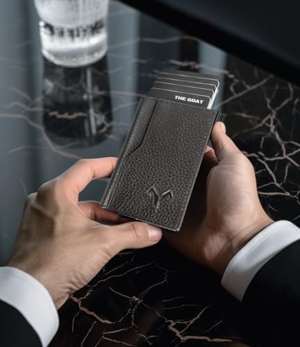 More information about Wallet Slim Leather for Men RFID Blocking Bifold Minimalist Card Holder Pop-Up From Pocket Wallet Holds 7 Cards and Cash (Black)