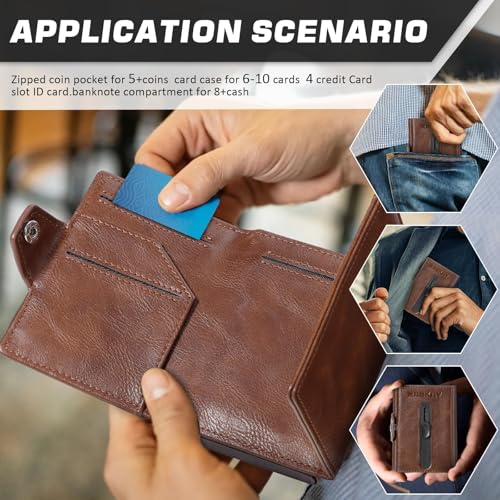 Wallet with Airtag Holder, Pop Up Card Holder and Cash Slot — Leather, Compatible with Apple Air Tag, RFID Blocking, Tri-fold Mens Wallet, Gift for Men (Brown) 5