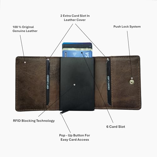HOT ! Men’s Leather Wallet – Trifold Design with Pop-Up Button and Push Lock System, 8 Card Slots, RFID Blocking, Multiple Compartments – Genuine Leather – Compact and Lightweight