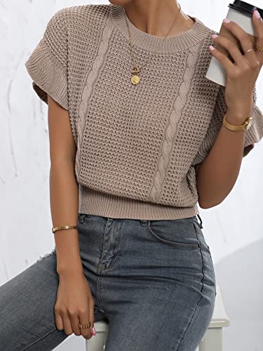 Verdusa Women's Ruffled Short Sleeve Round Neck Knitted Top Pullovers Sweater 5