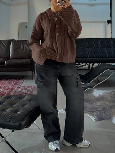 Saodimallsu Womens Open Front Cardigan Sweaters Button Down Knit Long Sleeve Crewneck Casual Loose Fall Outerwear 4