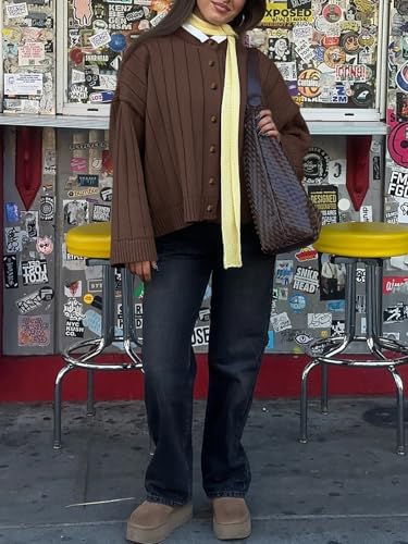 HOT ! Saodimallsu Womens Open Front Cardigan Sweaters Button Down Knit Long Sleeve Crewneck Casual Loose Fall Outerwear