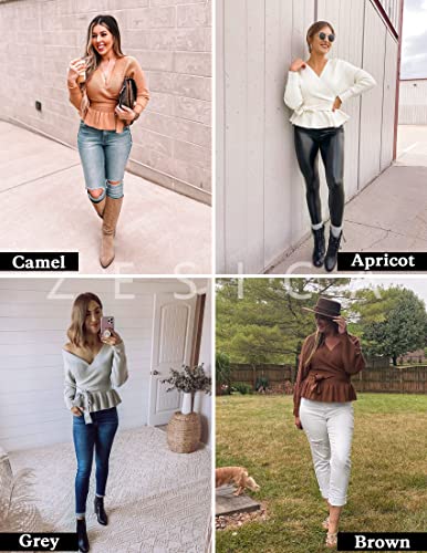 More information about ZESICA Women's Fall 2025 Wrap V Neck Long Batwing Sleeve Belted Waist Ruffle Knitted Sweater Pullover Top
