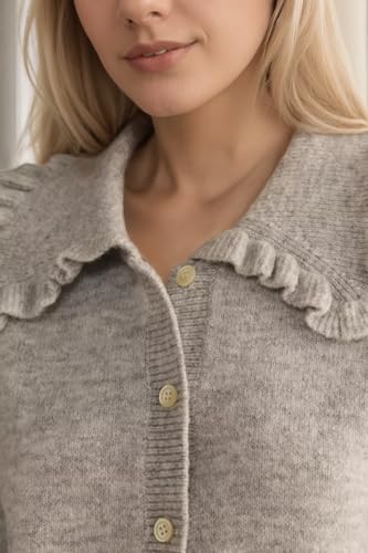 Womens Ruffle Collar Cardigan Sweater Button Up Open Front Fall Knit Jackets Cute Long Sleeve Button Down Cardigans 5