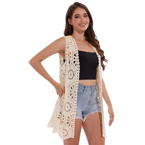 More information about Womens Floral Crochet Lace Boho Trim Sleeveless Open Front Vest Cardigan