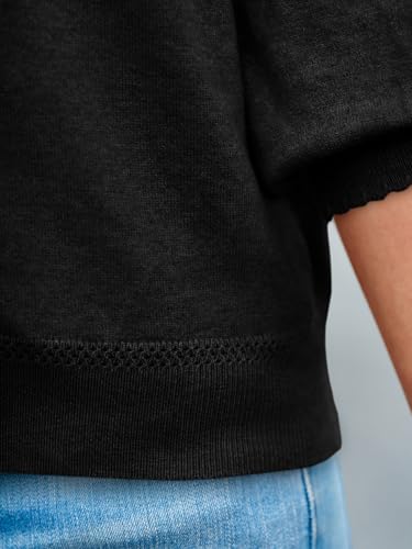 Cicy Bell Womens 3/4 Puff Sleeve Sweater Tops Fall Casual Crew Neck Lightweight Knit Pullover Loose Fit Scallop Trim Sweater 5