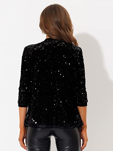 Allegra K Women's Sequin Cardigan 3/4 Sleeve Open Front Velvet Sparkle Jacket Party Glitter Blazer 6