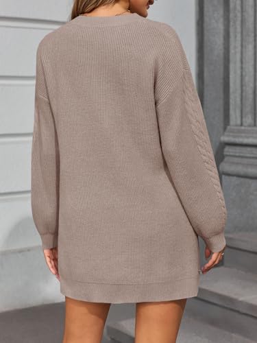Saodimallsu Womens V Neck Mini Sweater Dress Cable Knit Long Lantern Sleeve Casual Loose Fall Tunic Pullover Sweaters 4