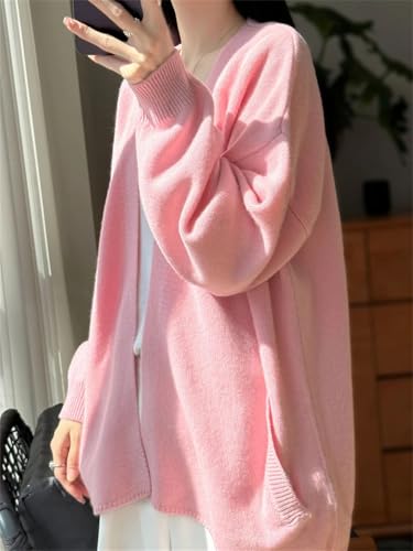 HOT ! Womens 100% Merino Wool Cardigan Shawl Long Sleeve Oversized Sweater Solid Color Loose Jumper