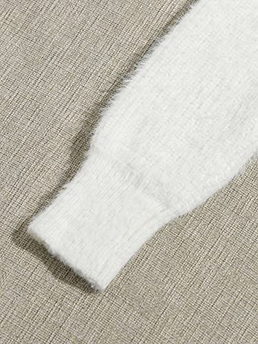 GORGLITTER Women's Chunky Fuzzy Crop Sweater Cardigan Pearl Button Down Long Sleeve Open Front Shrug Knit Cardigan 2025 3