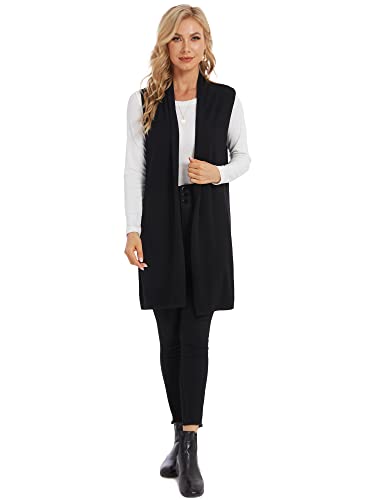 Moss Rose Women's Long Knit Cardigan Vest Casual Sleeveless Open Front Draped Duster Vest (Available in Plus Size) 1
