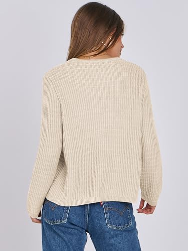 ANRABESS Women Cardigan Sweater Dressy Casual Classic Long Sleeve Crew Neck Button Down Tweed Knit Jacket 2025 Fall Outfits 2