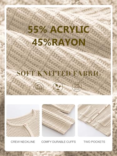 ANRABESS Women Cardigan Sweater Dressy Casual Classic Long Sleeve Crew Neck Button Down Tweed Knit Jacket 2025 Fall Outfits 6