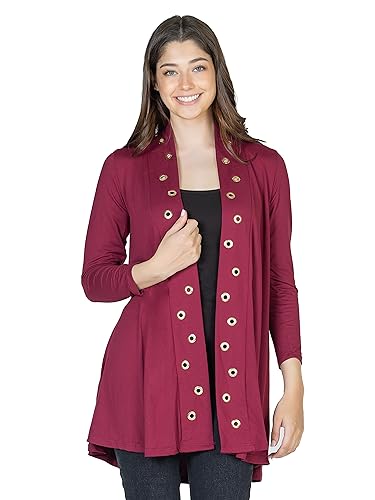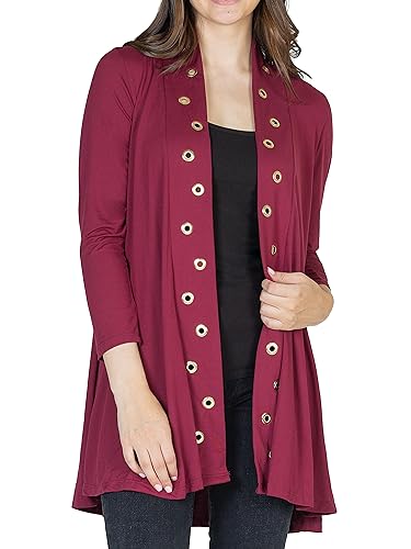 HOT ! 24seven Comfort Apparel Long Sleeve Mid Thigh Open Front Cardigan with Grommet Details