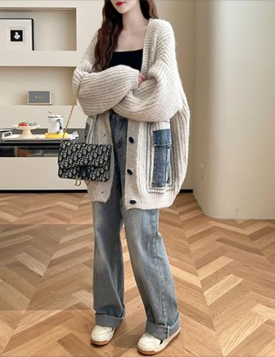 • Chic Design with Functional Details: Elevate your style with the flattering V-neck that elongates the neckline and pairs perfectly with layered necklaces. Vintage inspired cardigan for women, features contrasting denim patchwork pockets for a textured look. Drop shoulders and open-front design create a relaxed silhouette, while button closures allow versatile styling options from fully closed to casually draped