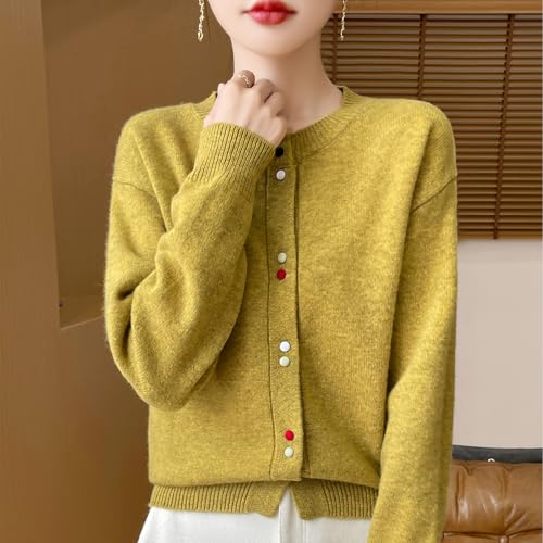 More information about Women's Crewneck 100% Merino Wool Sweater 2025 Spring Fall Solid Long Sleeve Colorful Buttons Cardigan Sweater