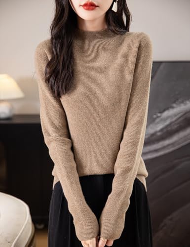 Women's 100% Merino Wool Seamless Sweater Mock Neck First-Line Ready to Wear Long Sleeve Ribbed Knit Pullover 6