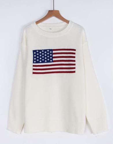 • Feature: Womens long sleeve sweater, crewneck sweater, knit sweaters for women, American Flag sweater for women, July 4th sweater, USA flag sweater, wearing our flag sweater and showing your Patriotism.