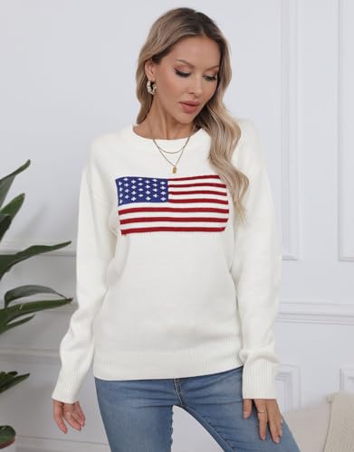 Alsol Lamesa Women’s American Flag Graphic Sweater Patriotic Long Sleeve Pullover Sweaters Crew Neck Knit Tops 4
