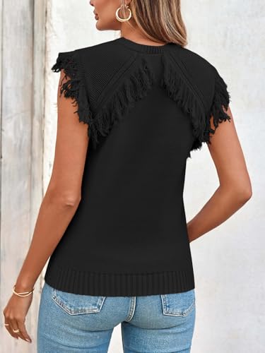 Saodimallsu Womens Sleeveless Sweater Vest Fringe Cap Sleeve Western Boho Trendy Crew Neck Pullover Knit Tops 5