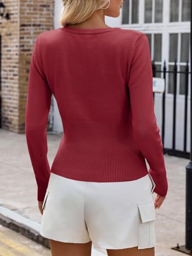 Saodimallsu Womens Slim Fit Cardigan Sweaters Sexy Button Crew Neck Fall Trendy Knit Long Sleeve Soft Open Front Tops 5
