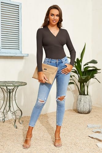 • Design: v neck, low cut wrap front, solid color, slim fitted, cropped knit, high-strength elasticity very soft, suitable for all body shape. Fashion knitted sweater with wrap and v-neck design to create a sexy look.