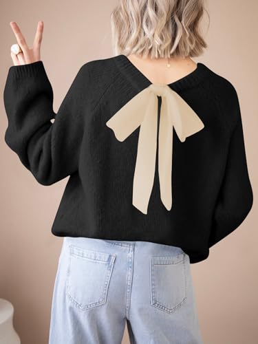 • VERSATILE STYLING: Perfect for layering over blouses or wearing alone. Pair with jeans for a casual daytime look or layer over skirts for a dressed-up vibe. The loose fit and crew neckline make the crew neck sweater for women easy to mix and match, while the bow detail elevates any outfit effortlessly. You will look so cute with the big satin bow on the back or front according to your preference.