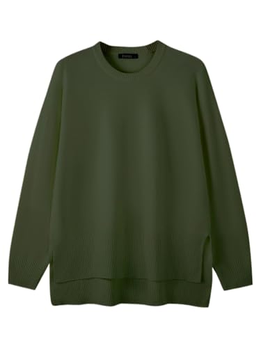 More information about ZANZEA Women's Fall Sweaters 2025 Oversized Loose Long Sleeve Crew Neck Side Slit Dressy Knit Casual Pullover Tops