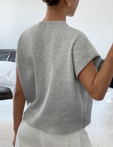 • Style: slouchy loose fit knit vest, short sleeve sweater for women, solid gray flower knit top, cute summer tops, spring tops for women, knit tank tops for women, business casual outfits for women