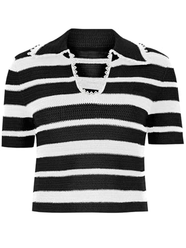 HOT ! Saodimallsu Womens Cropped Striped Sweater Top Summer Short Sleeve V Neck Collared Going Out Trendy Loose Polo Shirt