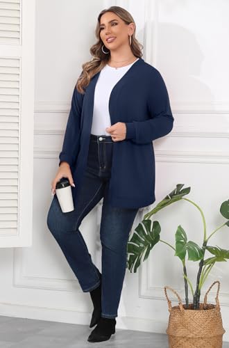 POSESHE Womens Plus Size Cardigan Sweater 2025 Fall Long Sleeve Lightweight Knit Open Front Casual Loose Cardigan 2