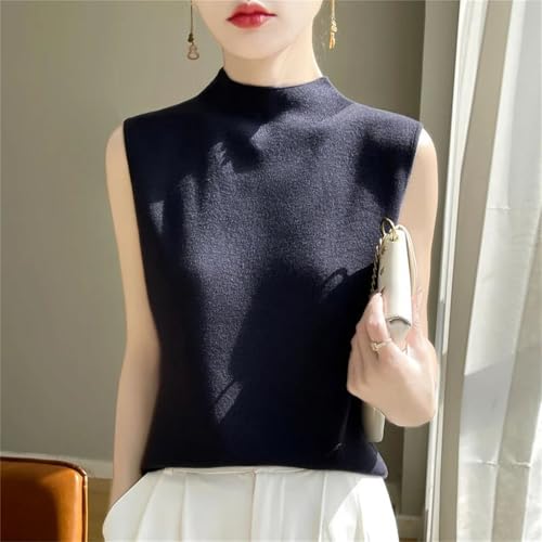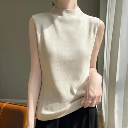 Women Knit Vest Waistcoat Spring Summer High Collar Sleeveless Knitted Sweater Pullover 5