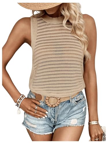 Women's Summer Sleeveless Crochet Tops Hollow Out Crewneck Tank Top Knit Sweater Vest 6