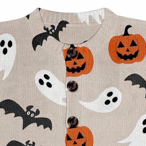 Halloween Sweaters for Women 2025 Funny Ghost Spooky Pumpkin Print Fall Winter Long Sleeve Button Knit Cardigan Sweater 2